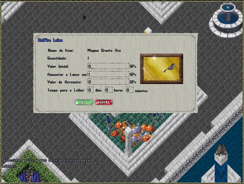 Taxa de Uso – O Leiloeiro cobra uma taxa de 100GPs por item a Venda/Leilão